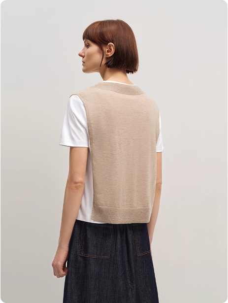 秋冬新款女装休闲时髦撞色叠穿假两件设计短袖针织衫