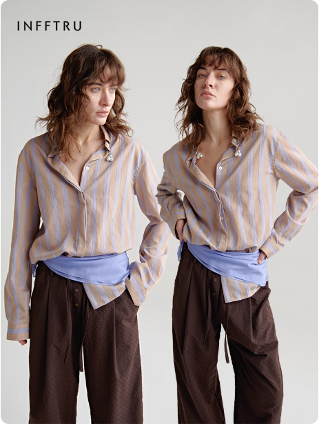 新款装饰链衬衫条纹复古简约百搭长袖上衣女装