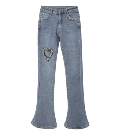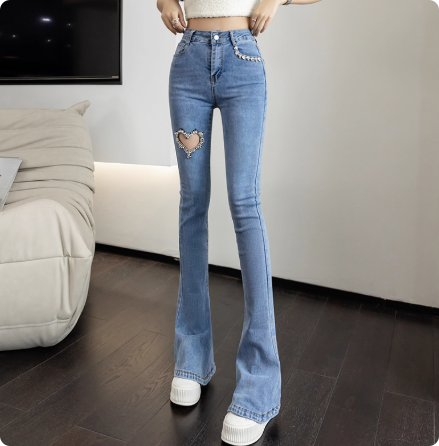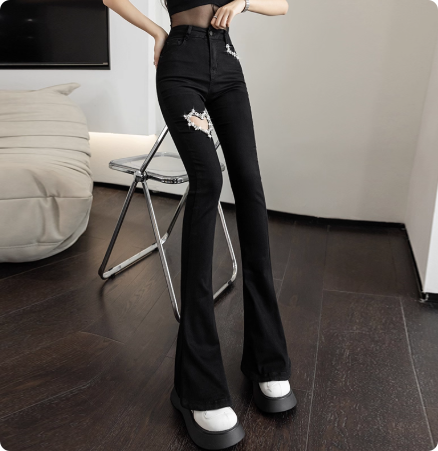 夏季新款牛仔裤修身高腰破洞显瘦微喇叭裤女薄款裤子女士