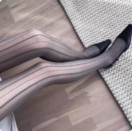 薄款丝袜复古花纹显瘦连裤袜秋季镂空透肉紫色防勾丝袜