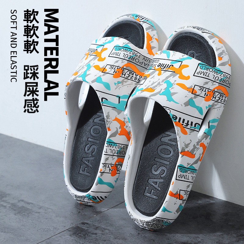 快速发货 拖鞋 暴力熊 鲨鱼 迷彩 纯色 室内外 沙滩 厚底 男女情侣 夏 潮 洗澡 防滑防臭 家居凉拖(超10双选宅配