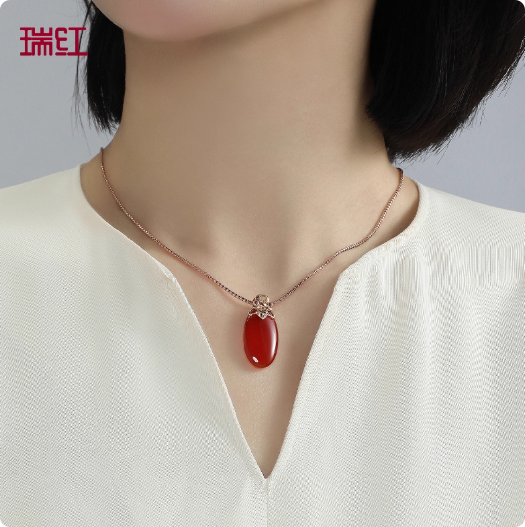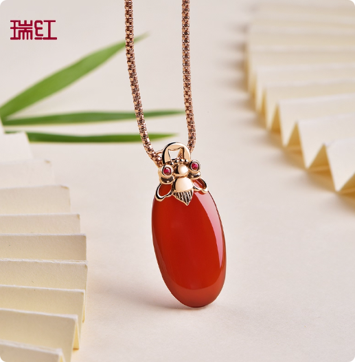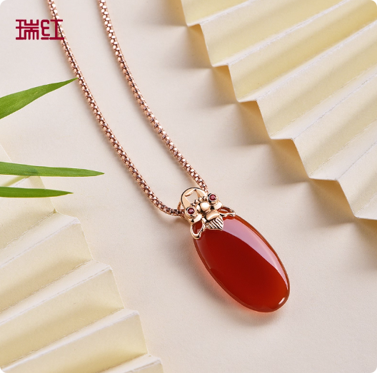18k金知了项链玉髓吊坠一鸣惊人玛瑙颈链高级感婆婆妈妈礼物