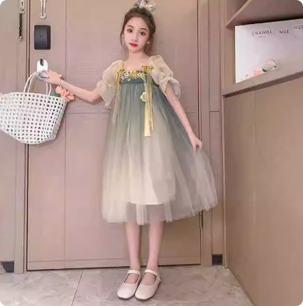 女童夏装连衣裙2024夏季中国风公主裙洋气小女孩渐变纱汉服古风裙
