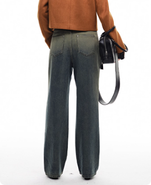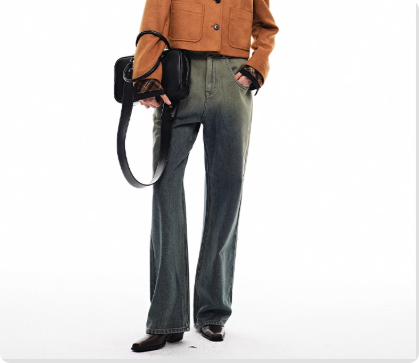 重磅复古渐变做旧蓝色水洗牛仔裤女2025秋季新款阔腿长裤