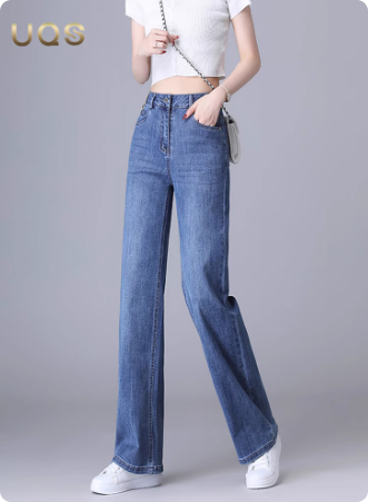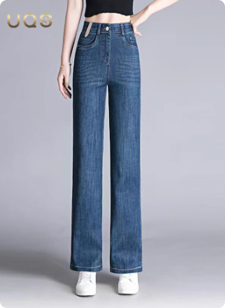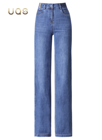 品牌蓝色阔腿牛仔裤女秋季新款2025显瘦垂感好看百搭直筒长裤