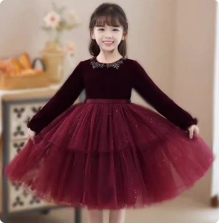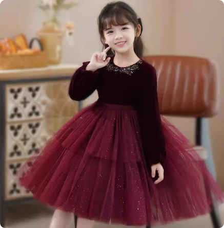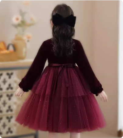千金风女童春秋季2025新款中大童洋气时尚网纱长袖秋季公主连衣裙