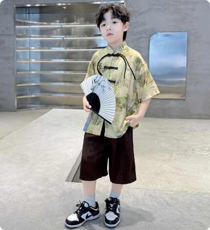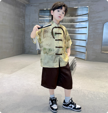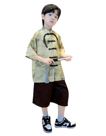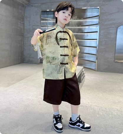 2025高端男童汉服套装新款唐装中式国风表演服演出男孩儿童古装夏