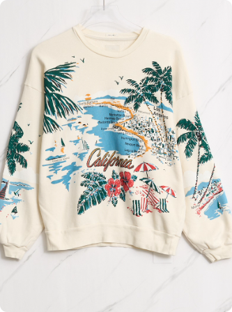女士度假风印花长袖卫衣银泰百货精品