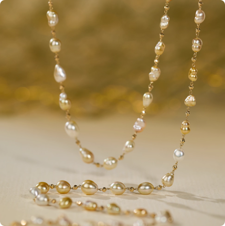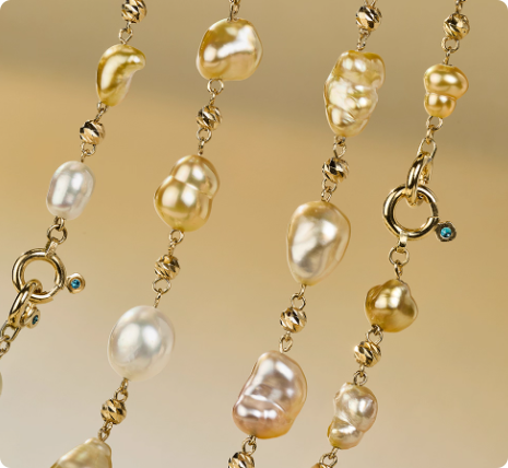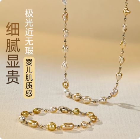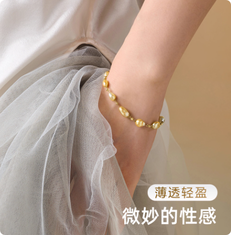 高級鎏金 温柔衬肤色 金白混彩南洋keshi珍珠项链手链