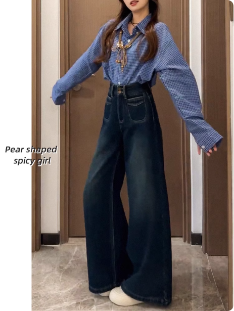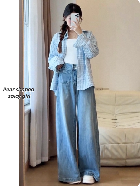 阔腿牛仔裤女大码胖mm显瘦梨形身材遮腿粗宽松拖地垂感高腰直筒裤