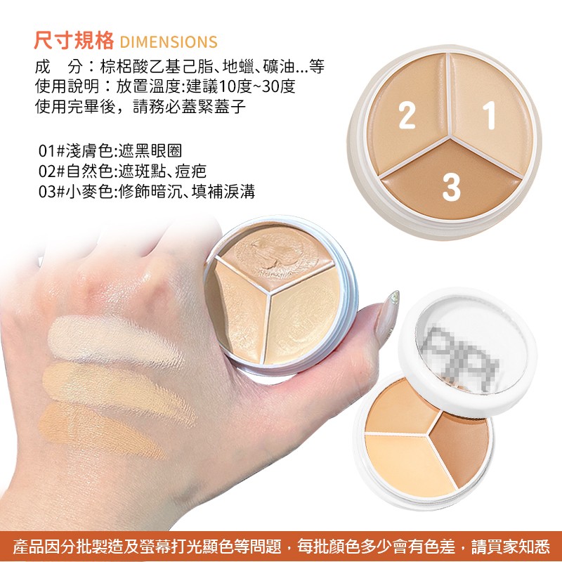三色遮瑕膏 遮瑕膏 遮瑕 三色遮瑕膏 痘印遮瑕膏 遮瑕盘 PIPL三色遮瑕膏 化妆品 美妆品【MZ0134】