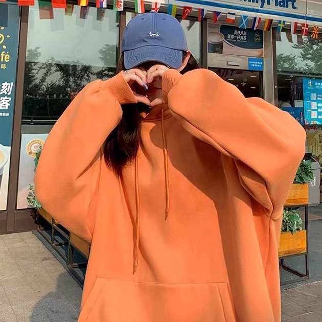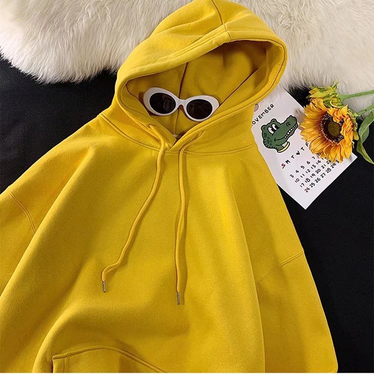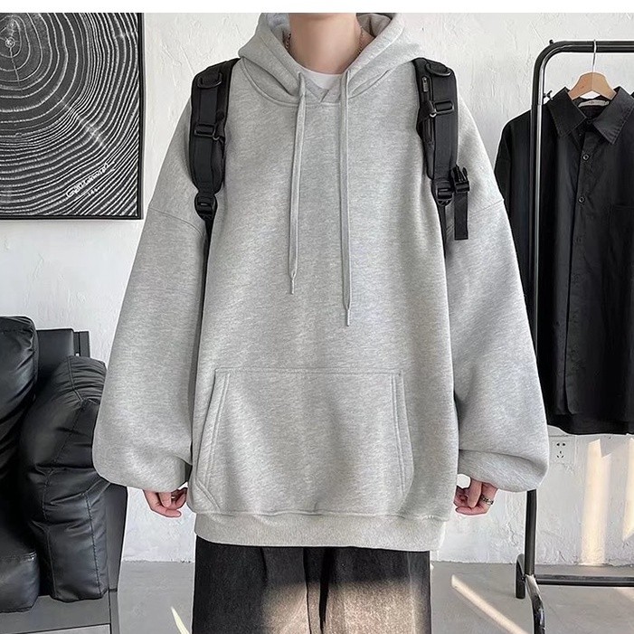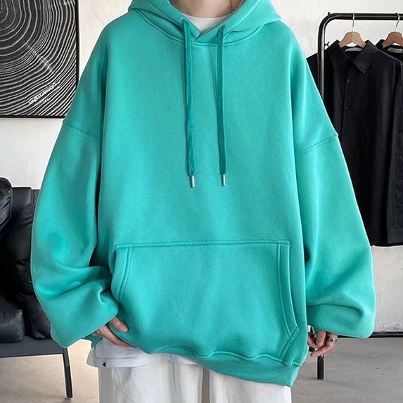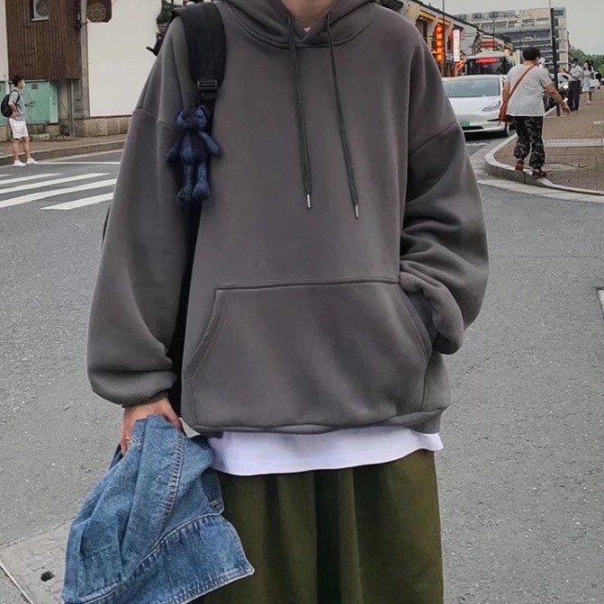 『瘾品流行』 素色帽t 加绒套头卫衣男 男长袖 帽T 长袖上衣男 春秋连帽高街运动潮牌ins宽松外套